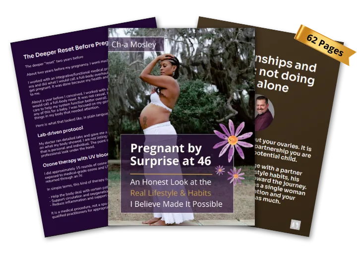 No. This guide is not medical advice, a treatment plan, or a fertility protocol. It is my personal story and a reflection on the lifestyle, mindset, and spiritual habits I believe played a role in my natural conception at 46. It’s meant to inspire reflection and conversations with your own trusted care team — not replace them.